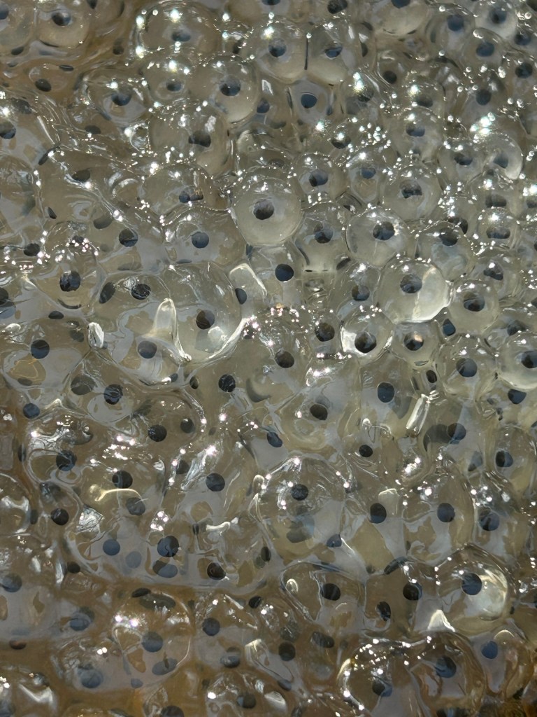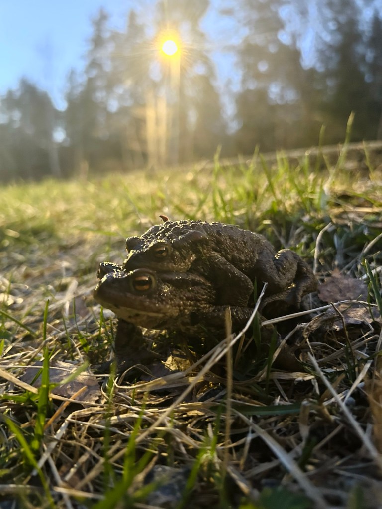 If you ever see two toads like this, here’s what’s happening. When it’s time for mating, the smaller male will grab onto the female in this piggyback position called ‘amplexus’ and hold on to her for up to several days. Frogs don’t fuck the way we do, fertilization happens externally. The male will ride the back of the female frog until she releases her eggs, and then he will release sperm on top of them. And so the cycle of life continues.